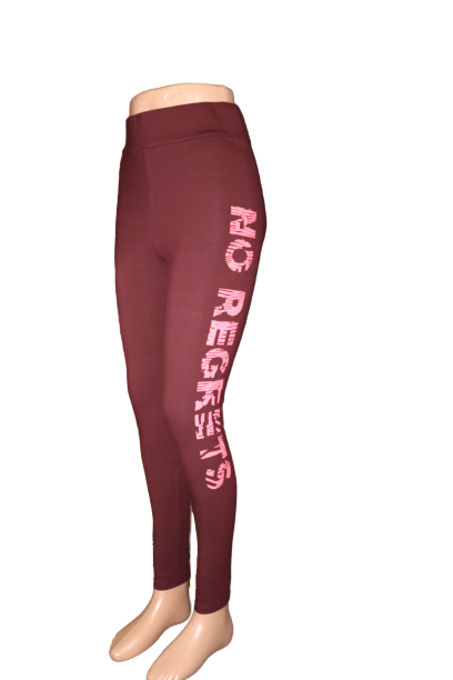 Colantii de dama cu imprimeu text “No Regrets”: Colantii sunt lungi, confortabili si versatili. Acesti colanti de dama sunt ideali pentru activitati sportive, plimbari sau pur si simplu pentru a te simti bine in timpul zilelor obisnuite. Indiferent daca ii porti la sala, in parc sau acasa, acesti colanti iti vor oferi confort si stil.