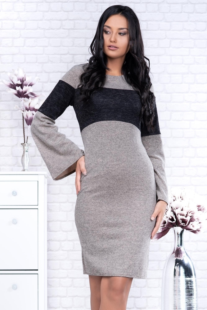 Rochie casual, de zi, cu maneci lungi, tip clopot, material usor elastic.