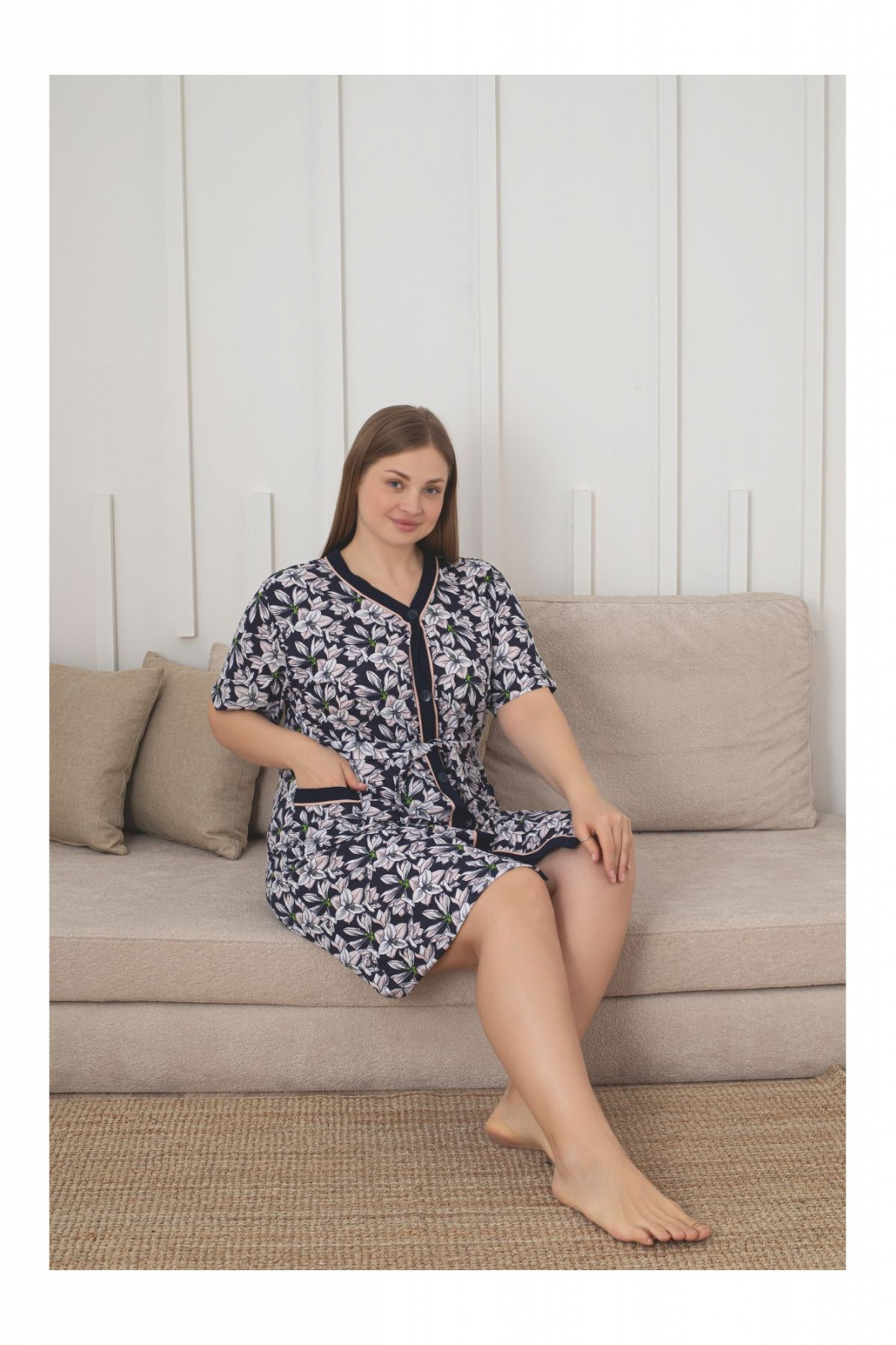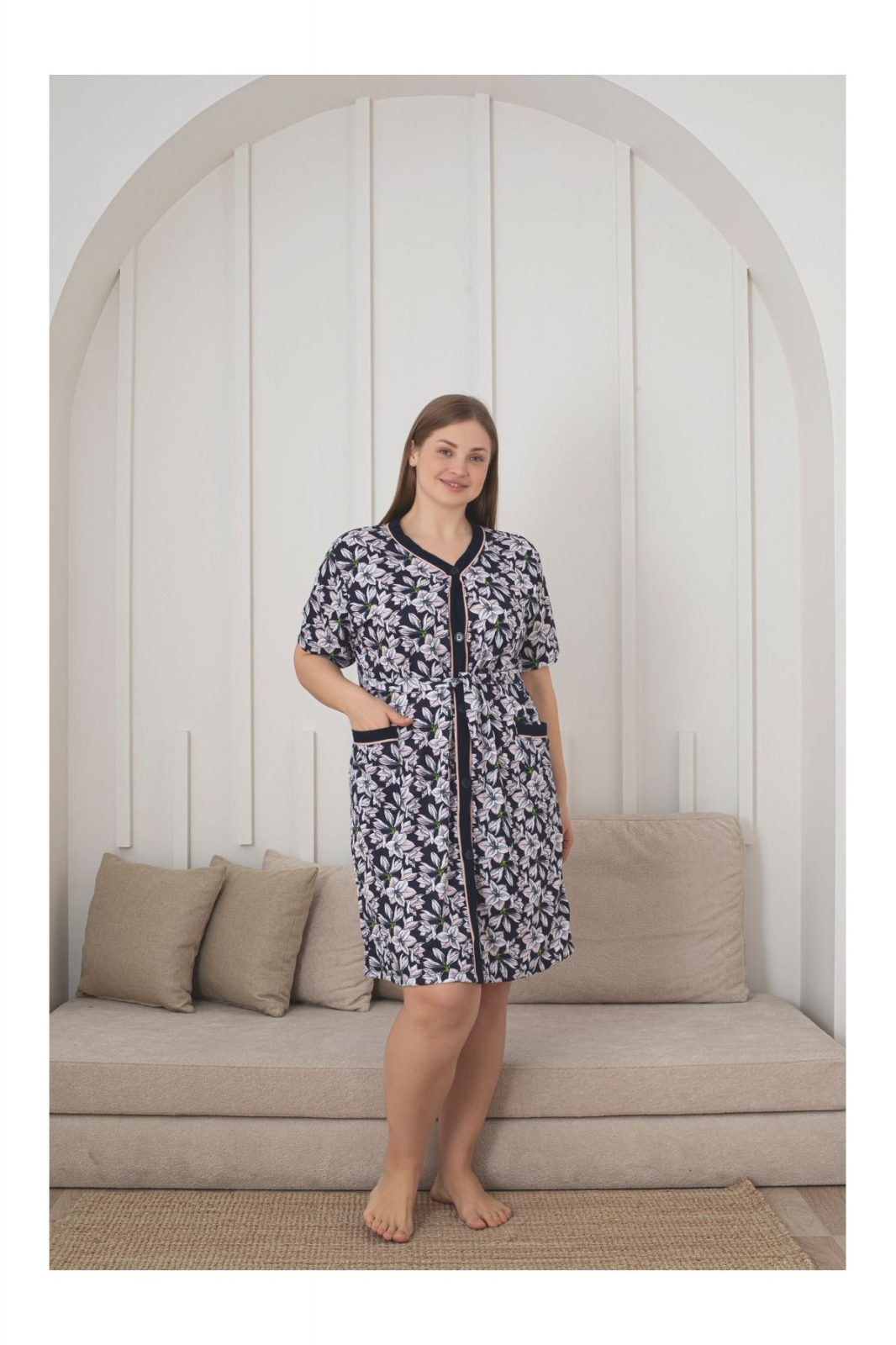Acest capot elegant pentru femei este perfect pentru momentele de relaxare acasa. Cu un design modern si confortabil, capotul are maneci scurte, inchidere in nasturi si buzunare laterale practice.
