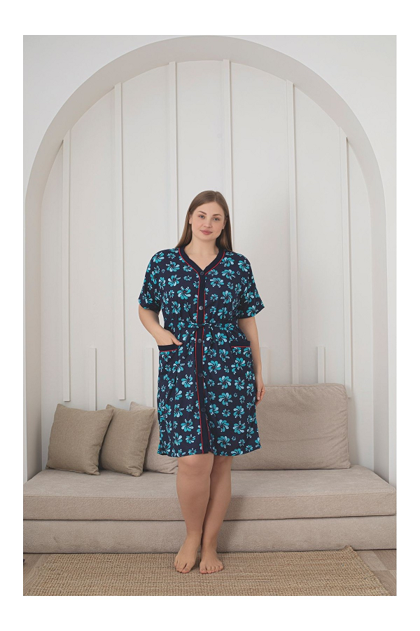 Acest capot elegant pentru femei este perfect pentru momentele de relaxare acasa. Cu un design modern si confortabil, capotul are maneci scurte, inchidere in nasturi si buzunare laterale practice.