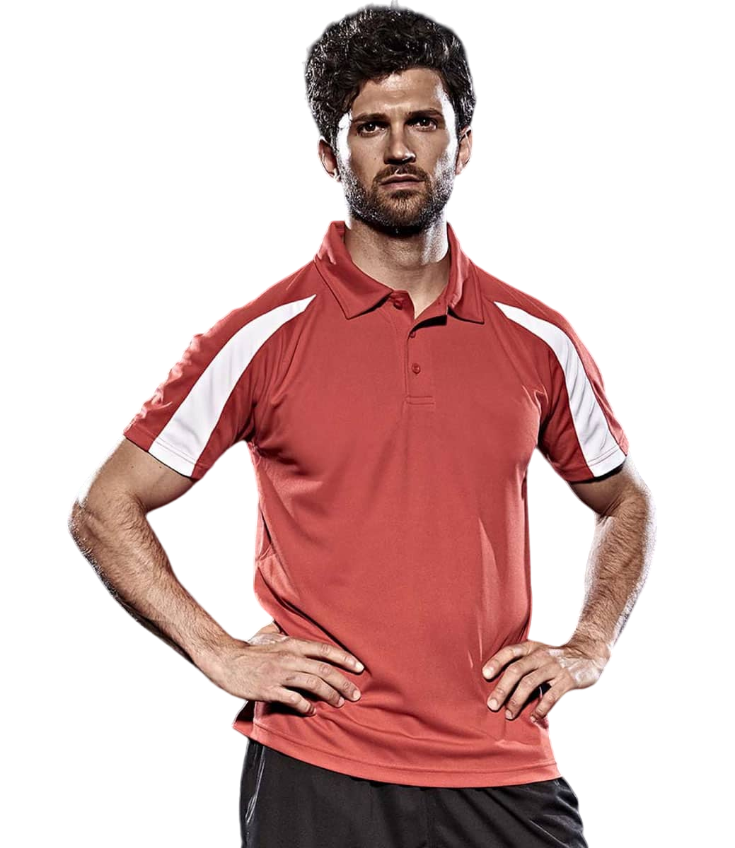 Tricou polo sport pentru barbati, cu dungi de culoare contrastanta aplicate pe maneci.