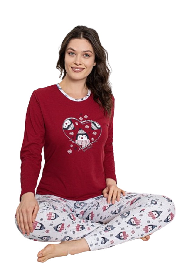 Pijama cu decolteu rotund, la baza gatului, Bordo-Visiniu